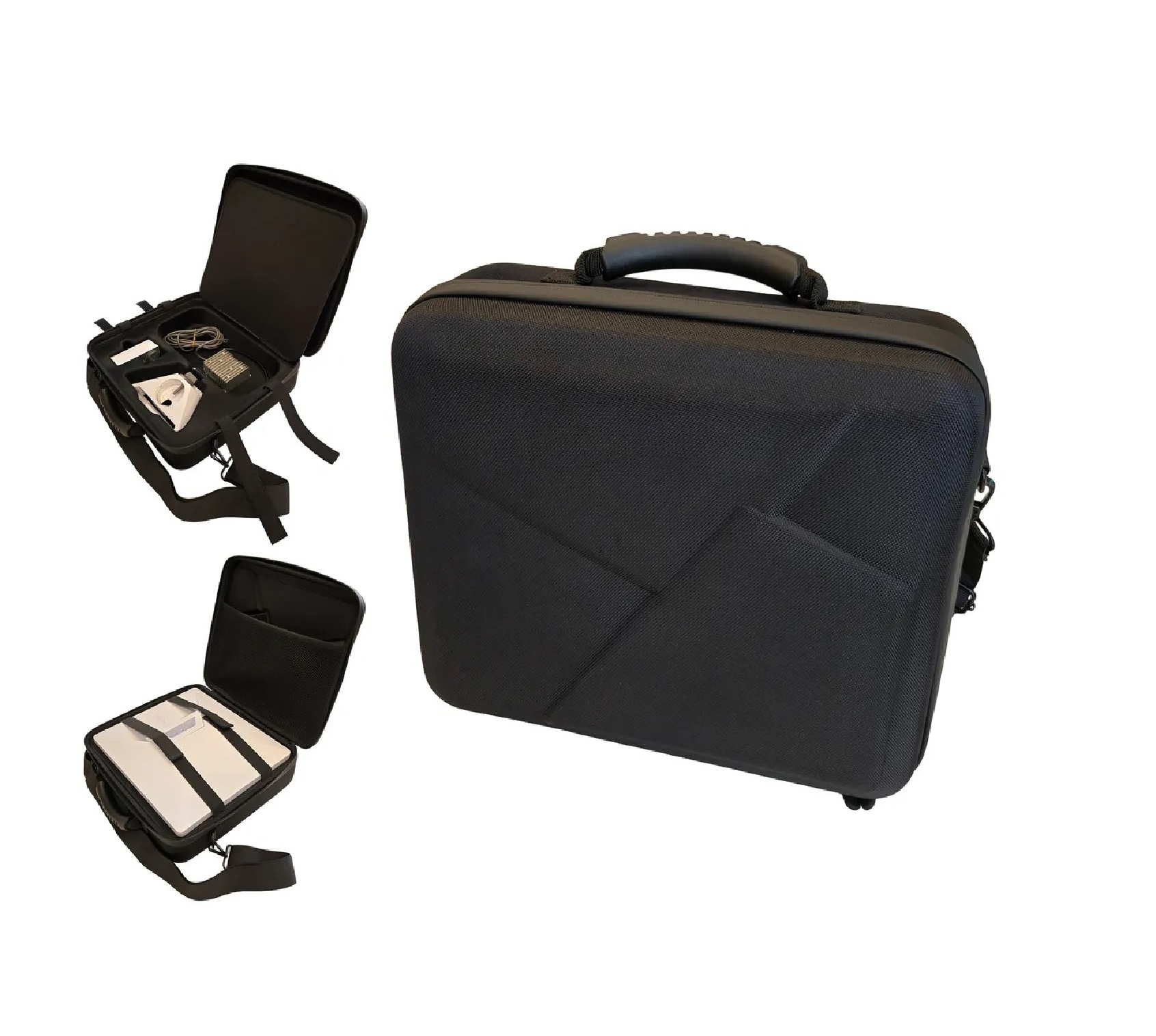 Llevá tu Starlink Mini bien protegido a donde vayas. Este bolso tipo valija tiene espacio a medida para la antena con su soporte magnético, fuente, router y cables, todo organizado y sujeto.