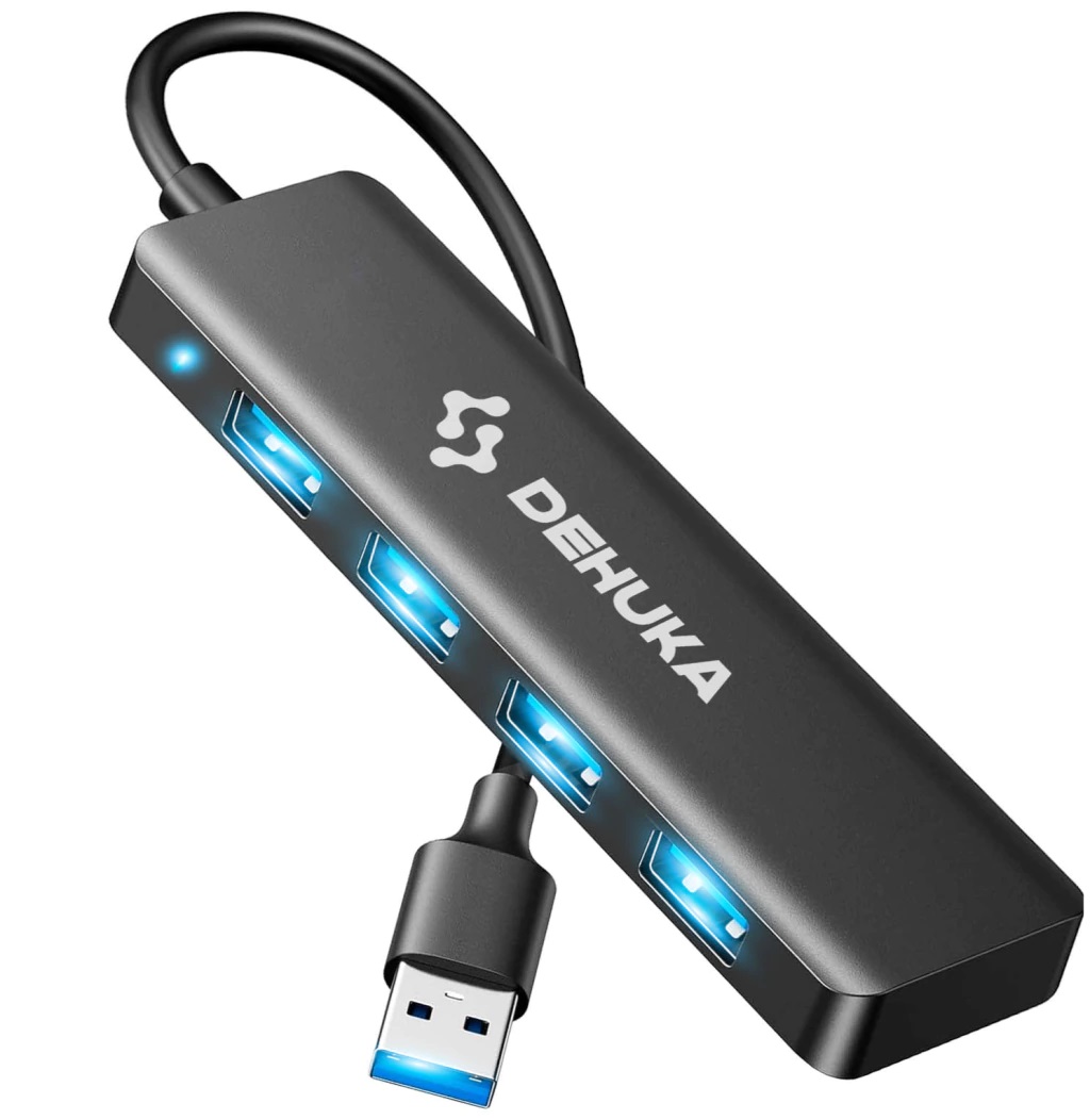 El Hub 4 en 1 USB 3.0 Dehuka te permite expandir las posibilidades de conexión de tu computadora, ya que conectándolo a un puerto USB C, multiplica por 4 los puertos, pudiendo cumplir muchísimas funciones como la transferencia de datos y carga eléctrica a través de sus puertos USB 3.0.